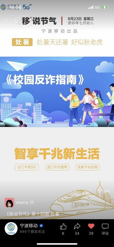 宁波移动结合各类节日、节气、活动等热点拍摄原创反诈防诈视频,并与学校联合制作宣传针对学生群体的“开学季校园反诈指南”,与政府街道联合制作推广反诈视频彩铃“防范电信诈骗牢记‘九个凡是’”,与公安联合制作拍摄“京东白条、金条诈骗”反诈宣传短片,通过微信、微博、抖音、手机彩铃等各大平台开展宣传,告知广大市民“凡是刷单都是诈骗!凡是自称公检法,让你汇款到安全账户都是诈骗!凡是网上购物客服说退款,索要银行卡号、验证码都是诈骗!……”大幅降低居民受骗风险,全力守护群众的“钱袋子”。今年以来,已原创制作反诈宣传视频16部。