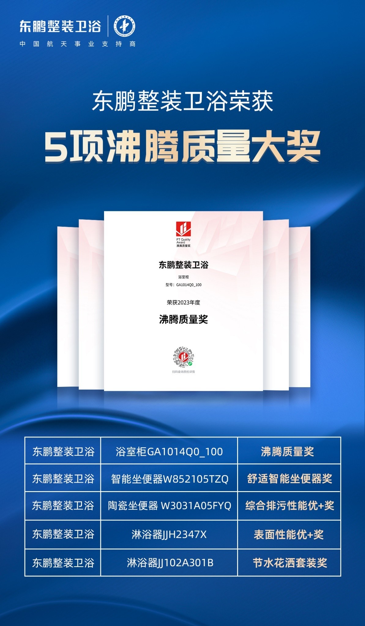 △东鹏整装卫浴荣获5项沸腾质量大奖