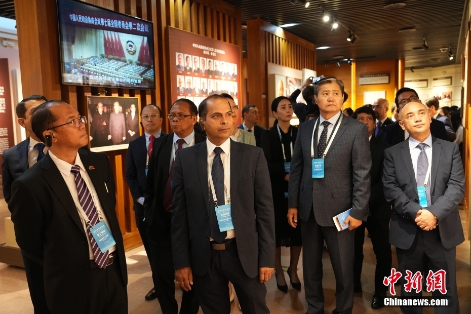 9月12日,北京,“驻华使节进政协”活动在全国政协举行,来自巴基斯坦、老挝、哈萨克斯坦等18个国家的驻华大使、高级外交官等参观“人民政协光辉历程”展览。 中新社记者 崔楠 摄