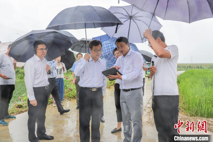 全国智慧农业气象服务现场会参会人员在合肥市肥西县丰乐镇智慧农业示范基地观摩。安徽省气象局 供图