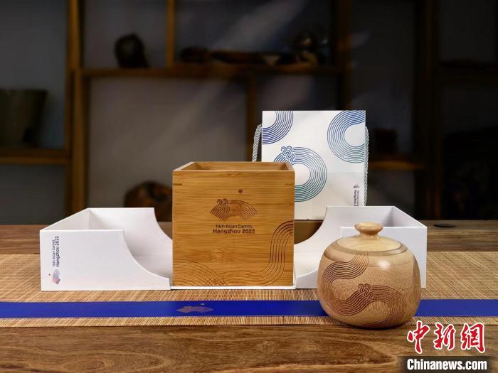 中新网衢州9月14日电 (张斌 夏天谷)“这是我们为杭州亚运会设计制造的竹韵茶叶罐,刻有杭州第19届亚运会会徽,造型也结合了我们本地饭甄山的山景。”日前,在浙江省衢州市龙游县溪口老街,龙游新联会理事、“一盒故乡”创始人姜鹏拿着竹韵茶叶罐介绍说。
