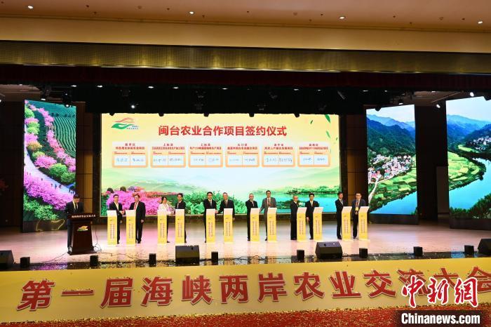 此次大会还进行了农业领域对台合作项目签约仪式:共签约项目25个,总投资额58亿元,主要涉及台湾名优农产品种植、农产品加工、三产融合等领域,其中12个项目上台签约。
