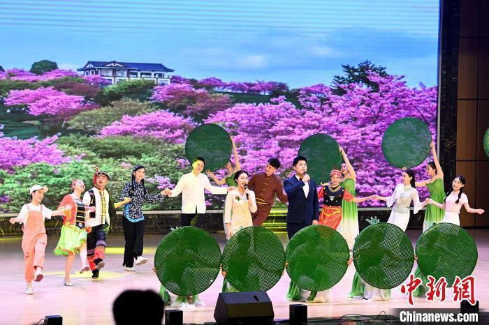 大会启动现场上演配乐音舞诗《茶香悠悠两岸情》。中新网记者 张金川 摄