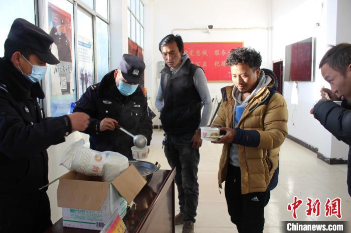 图为西藏日喀则边境管理支队鲁鲁边境检查站民警在便民服务室为旅客提供暖心服务。鲁鲁边境检查站供图