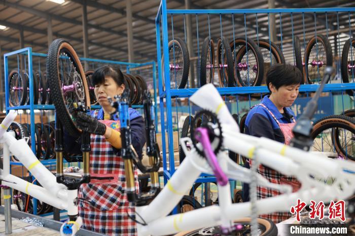 11月8日,河北省邢台市广宗县某自行车企业生产车间里,工人正在下线点数全检。梁智晓 摄