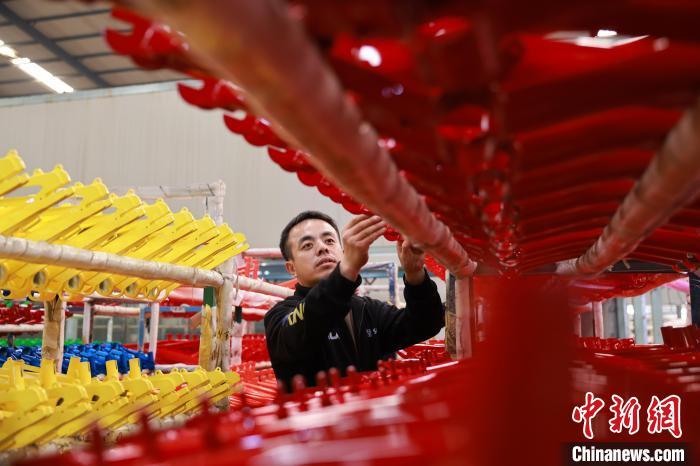 11月8日,河北省邢台市广宗县某自行车企业生产车间里,工人检查车架质量。梁智晓 摄