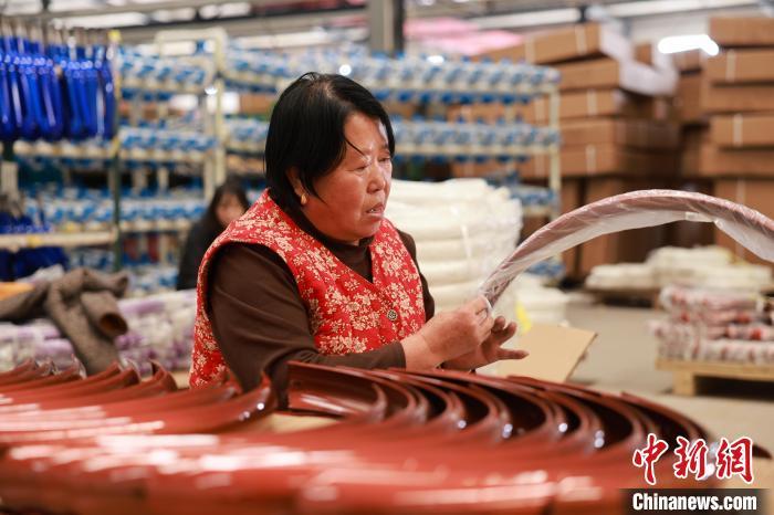 11月8日,河北省邢台市广宗县某自行车企业生产车间里,工人正在检查车圈质量。梁智晓 摄
