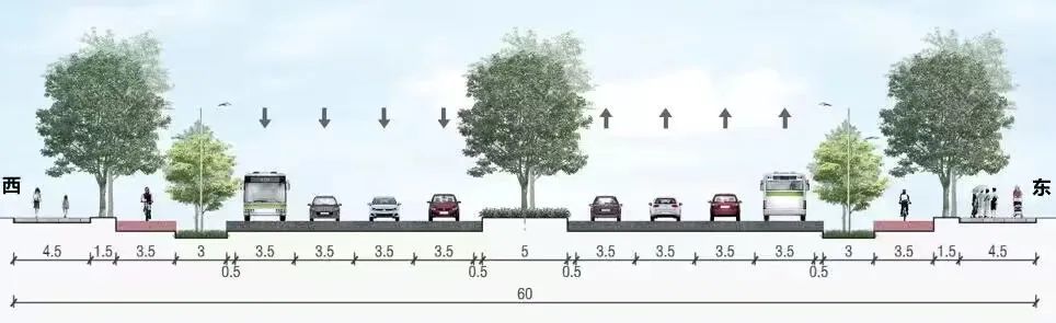 明海大道(北环东路-镇海大道)局部断面示意图。