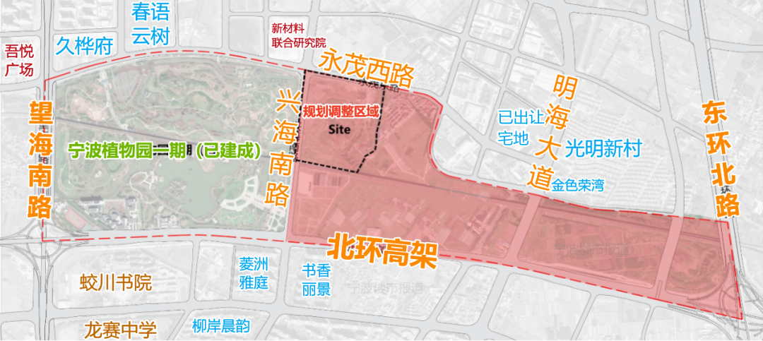 具体位置位于现宁波植物园一期的东侧。批前公示时指出,这里为宁波植物园二期研学营地地块。