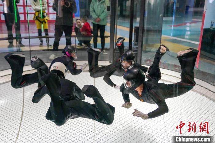 中新网重庆12月6日电 (记者 刘贤)中国体育彩票2023年全国室内跳伞(风洞)锦标赛6日在重庆两江新区际华园体育小镇开幕。来自北京、深圳、重庆等全国9个顶尖跳伞队的70余名选手,将在三天内展开激烈的室内“空中飞人”竞技。