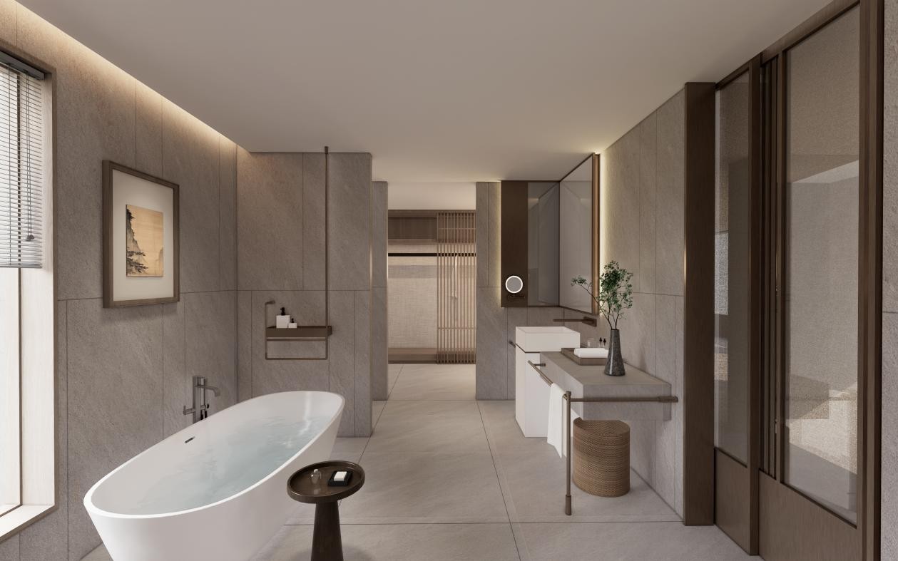 以东方文化启礼,融合现代极简主义,通过改造铺地、配植苗木、布设装饰等方式,将中华传统哲学的儒道精神、东方人居的闲情逸致,于一步一景中徐徐展开,唤醒现代人对山水雅居的向往,打造宋韵美学下的景观。