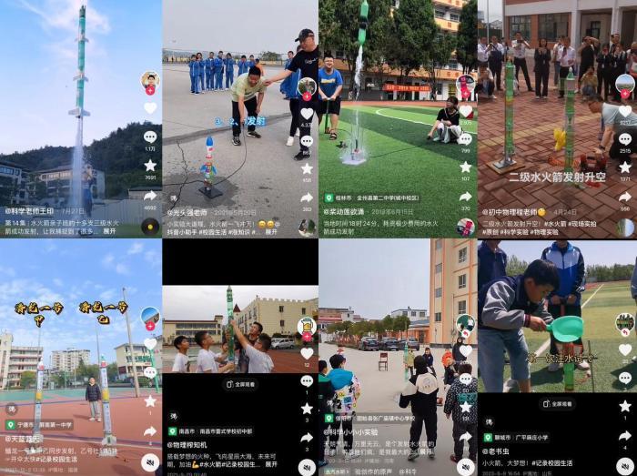 各地中小学师生在抖音放飞“水火箭”