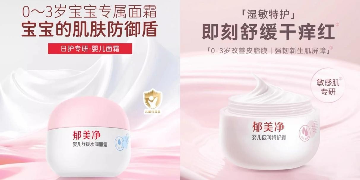 以“照护”系列新品——郁美净婴儿舒缓水润面霜(南方款)&郁美净婴儿倍润特护霜(北方款)为例。前者针对南方湿热,孩子肌肤易敏痛点,将牛油果树果脂、油橄榄果油、霍霍巴籽油、向日葵籽油天然果油成分,以黄金比例复刻成亲肤仿生皮脂膜,达到增强婴儿肌肤屏障,缓解外界刺激、减少水分流失的效果;后者则从北方空气干燥角度出发,特别添加银耳多糖成分,为宝宝肌肤打造天然防护膜,快速缓解由干燥引起的皮肤干、痒、红等问题。