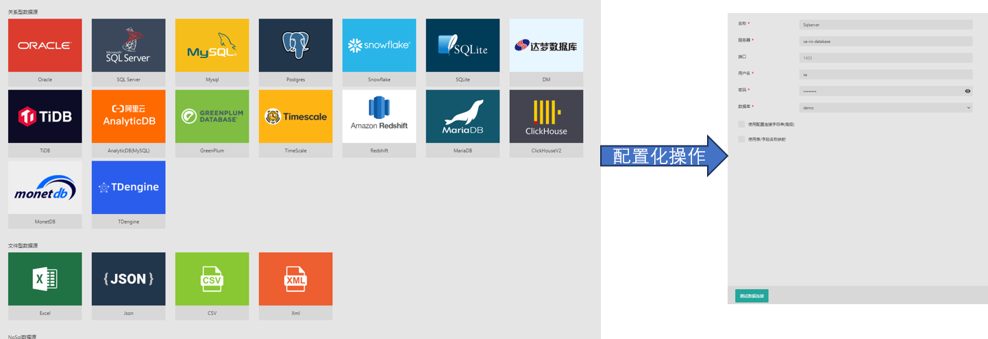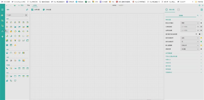 打开设计器直接进行数据源的对接,Wyn商业智能支持50+数据源类型,包括Oracle SQL Server MySQL Postgres SQLite等。