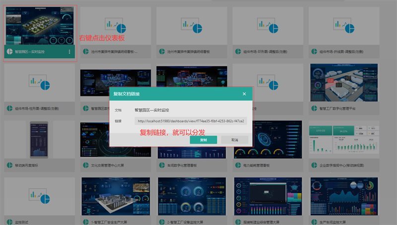做好的仪表板和大屏最新是需要分发出来,在其他的系统或者网页中进行大屏的预览展示。那么使用Wyn做好的仪表板大屏分发集成起来非常简单,做好的每一张仪表板分发的时候就是分发出来一个Url链接,用户只需要查看该链接即可。