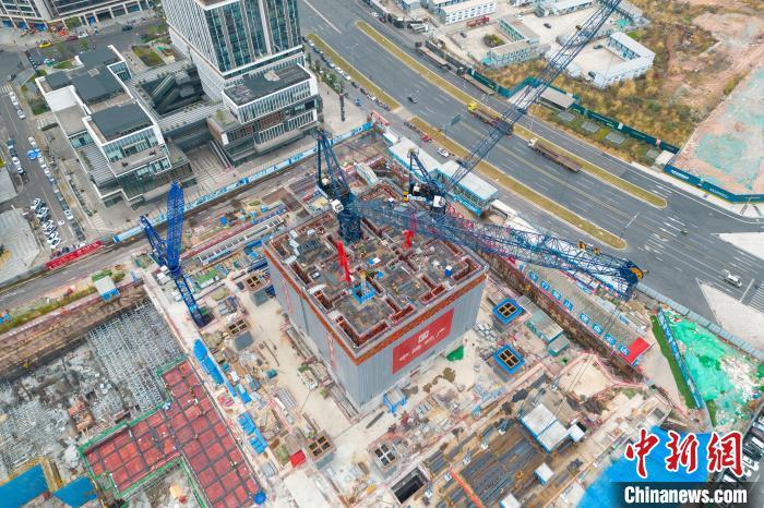 “造楼机”正在有序施工。张浪 摄
