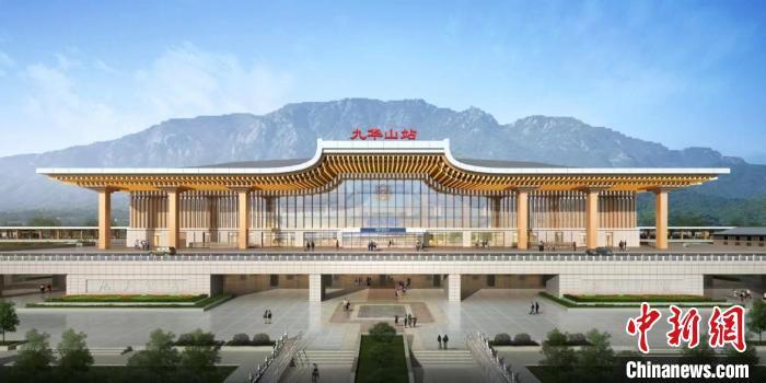 池黄高铁新建九华山站站房效果图。中铁十局供图。