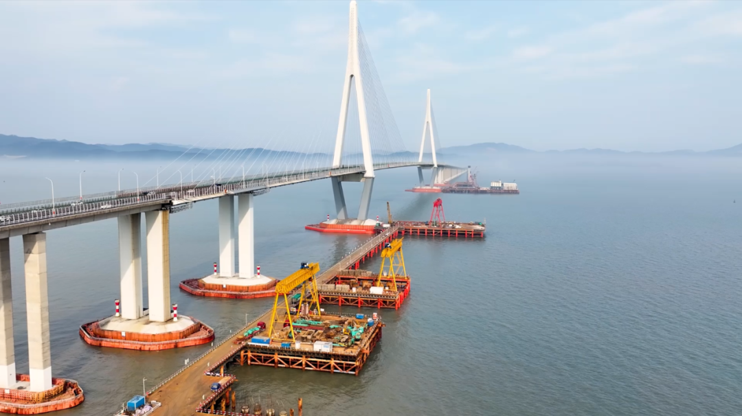 象山港跨海大桥是国内首座市域(郊)铁路跨海大桥,全长约8.2公里,跨海段桥梁长约6.2公里,主跨688米。春节期间,在项目部和相关单位的全力保障下,一线工人不停工,紧锣密鼓地推进大桥主墩桩基浇筑施工任务。节后将安排起重船进场,进行主桥1850吨钢吊箱分块拼装及下放作业,为下一步主墩承台施工做好准备。