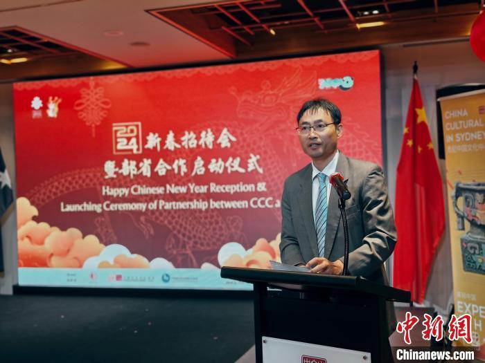 当地时间2月25日,2024年悉尼中国文化中心新春招待会暨中心与西安市部省合作启动仪式在悉尼中国文化中心成功举办。悉尼中国文化中心主任兼驻悉尼旅游办事处主任刘东感谢过去一年中心的朋友、伙伴和友好人士给予中心的大力支持。记者 顾时宏 摄