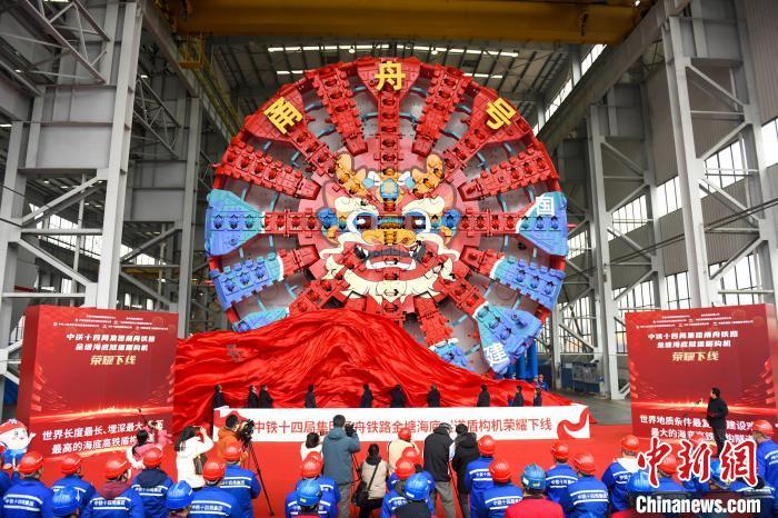 2月26日,即将应用于世界最长海底高铁隧道的盾构机“甬舟号”在长沙下线。杨华峰 摄