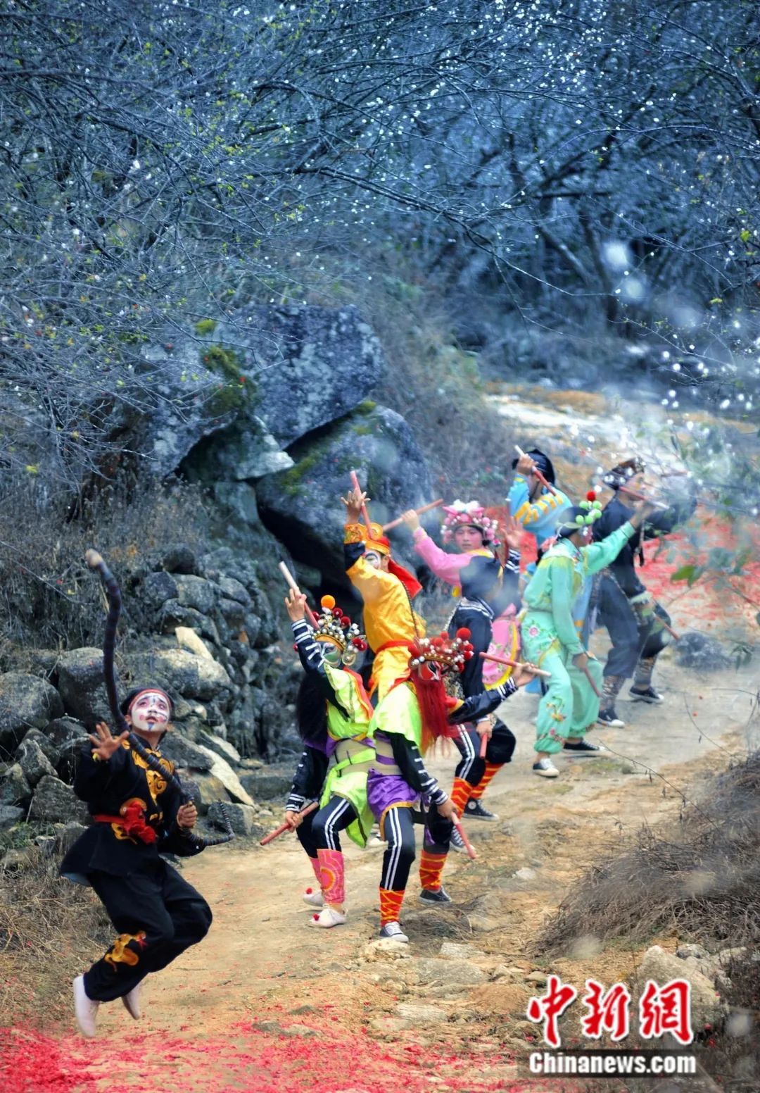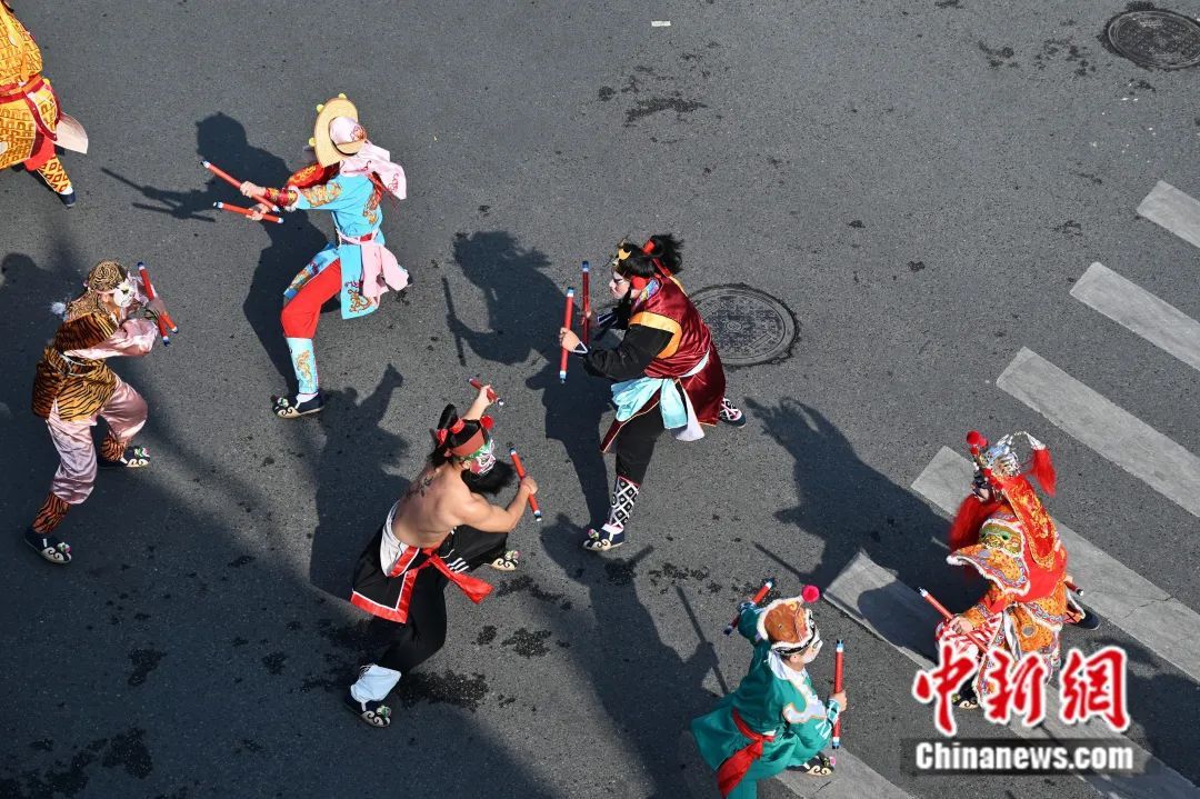 或沿街挨村游行表演,热闹非凡。