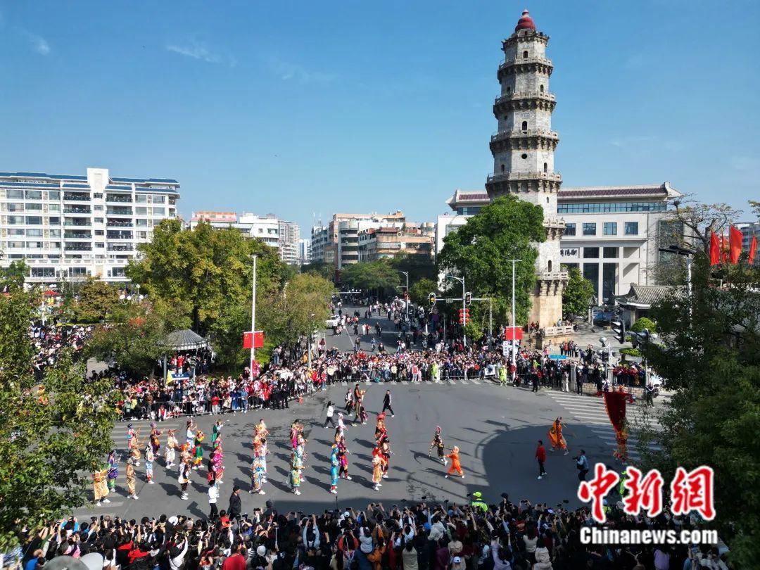 2月11日,“中华战舞·普宁英歌”2024年春节英歌舞巡游活动在普宁市举行。张思杰 摄
