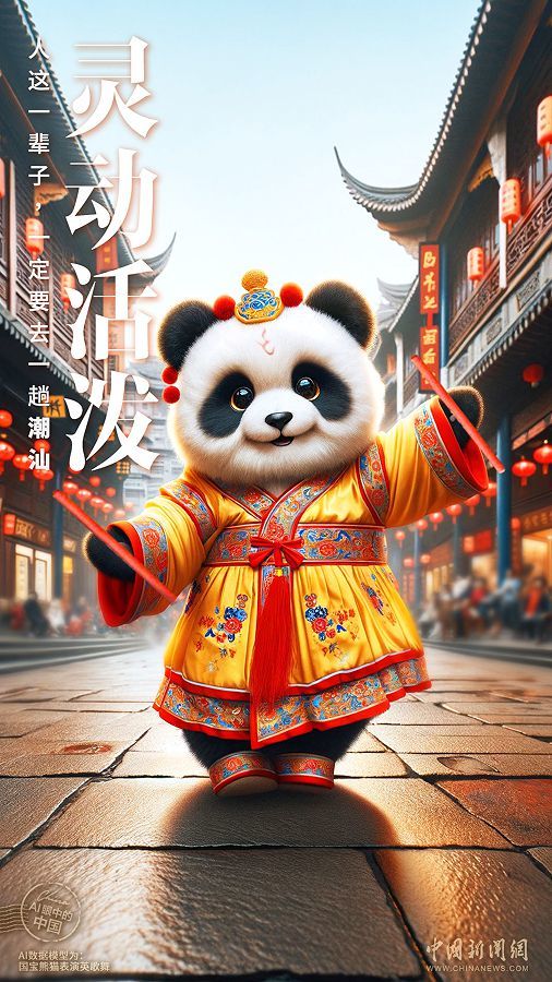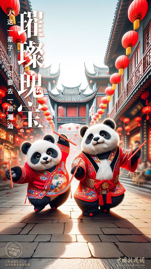 AI也去潮汕看了看英歌舞,熊猫跳英歌,都是“国宝”!