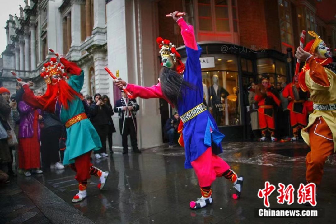 图为国家级非遗普宁英歌在英国伦敦的“炸街”表演。普宁市委宣传部供图