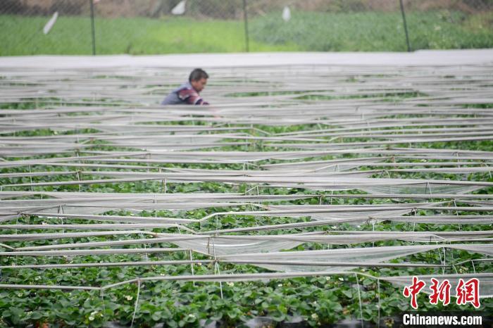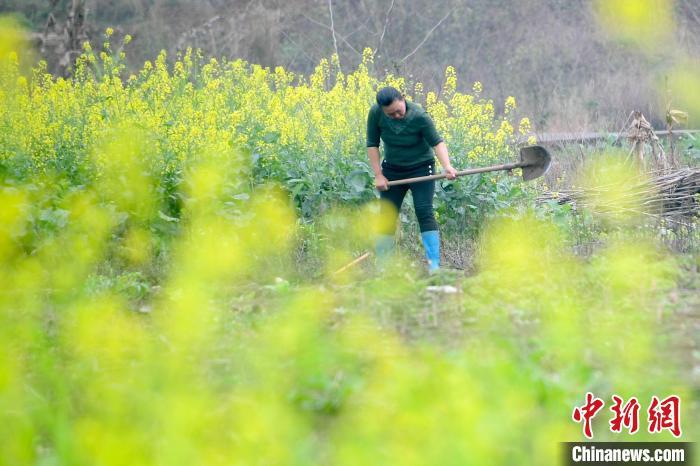 3月5日,广西罗城仫佬族自治县四把镇大新村农民在田间管护农作物。廖光福 摄