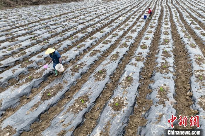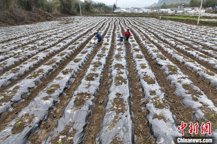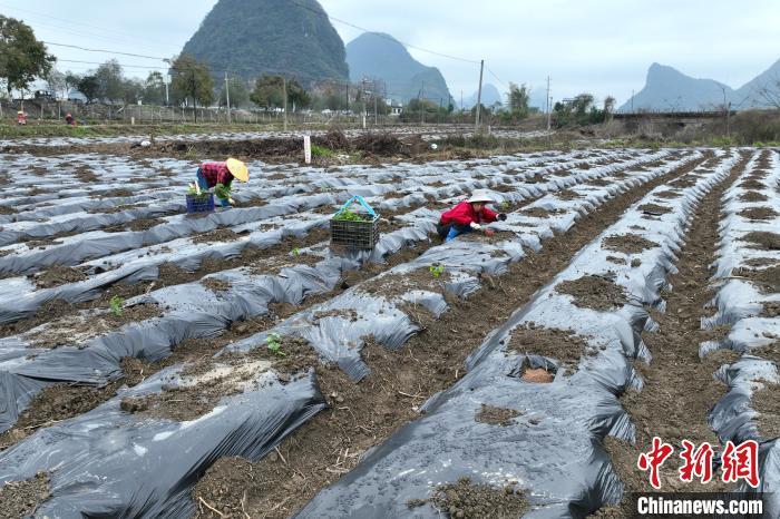 3月5日,广西河池市罗城仫佬族自治县四把镇大新村农民在田地里忙碌劳作。当日是二十四节气中的惊蛰,罗城县各地农民抢抓农时,开展春播耕地、土地管护、田地施肥等农事活动,田间地头呈现一派人勤春早的忙碌景象。