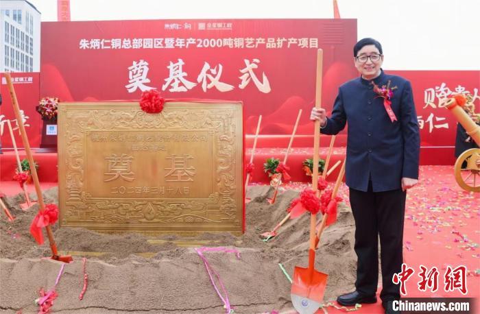 中新网杭州3月18日电(鲍梦妮 俞锦杰)3月18日,“朱炳仁·铜”总部园区建设暨年产2000吨铜艺产品扩产项目在杭州市临平经济技术开发区正式动工。该园区计划3年建设,总投资达5亿元,总建筑面积超14万平方米,是中国规模最大的铜艺术品生产基地之一,并拥国内规模最大的铜艺美术馆,建成后将展陈近万件铜艺珍品。