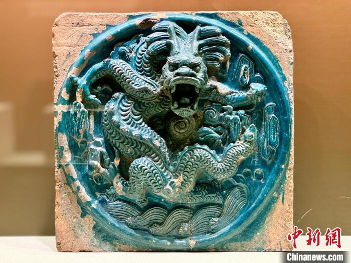 3月19日,“晋韵华彩——山西琉璃艺术展”在沈阳故宫开幕。图为团龙纹琉璃壁心(清)。(沈阳故宫博物院供图)