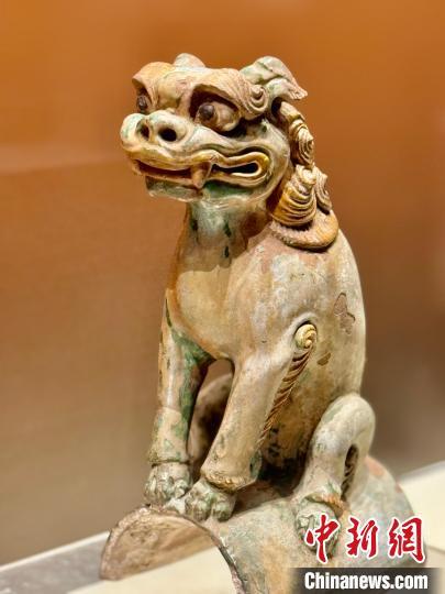 3月19日,“晋韵华彩——山西琉璃艺术展”在沈阳故宫开幕。图为黄绿釉狮子脊兽(宋)。(沈阳故宫博物院供图)