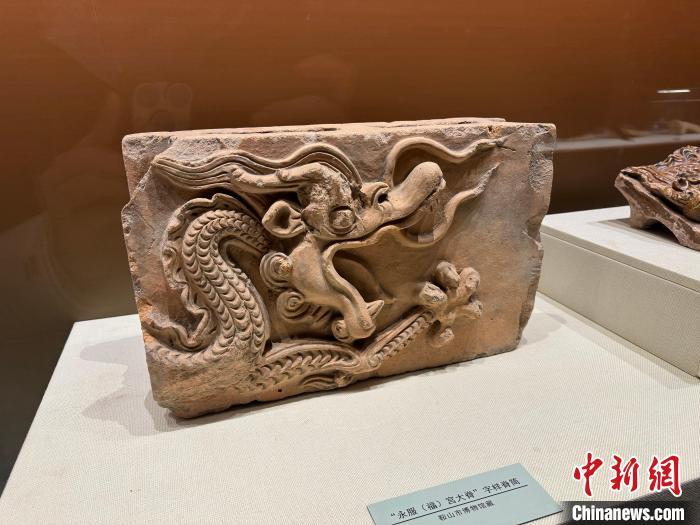 3月19日,“晋韵华彩——山西琉璃艺术展”在沈阳故宫开幕。图为“永服(福)宫大脊”字样脊筒。中新社记者 韩宏 摄