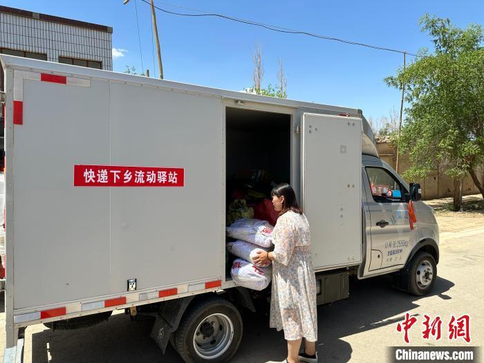 2023年7月14日,民众在敦煌快递下乡流动驿站取件。(资料图) 戴文昌 摄