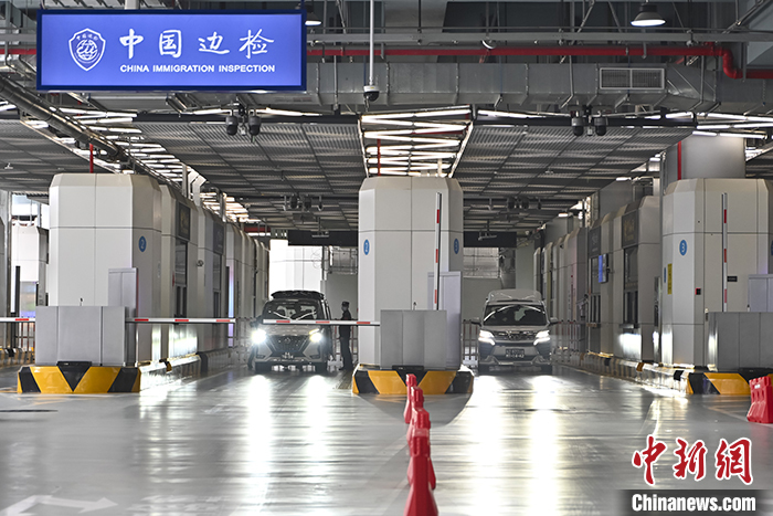 资料图为2024年3月18日,广东珠海,澳门车辆通过横琴口岸客货车联合一站式车道入境。 中新社记者 陈骥旻 摄