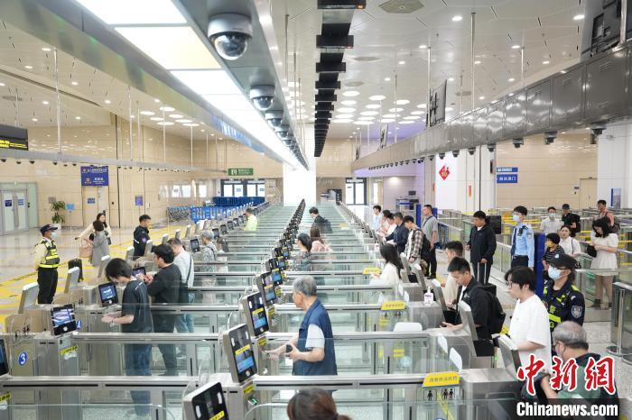 3月29日,出入境旅客经横琴口岸“合作查验 一次放行”快捷通道通关。何天洋 摄
