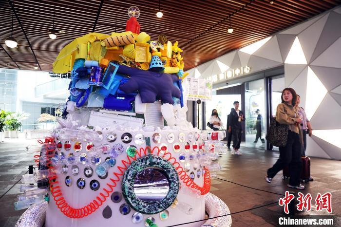 4月1日,在上海虹桥天地举行的“JOIN SHANGHAI循循有新”环保艺术装置展上,以旧衣物、塑料瓶、废旧电池等废弃物品为原材料创作的12件艺术作品吸引了不少关注的目光,本次展览旨在给消费者带来关于可持续命题的深入思考,呼吁大家加强环保意识。