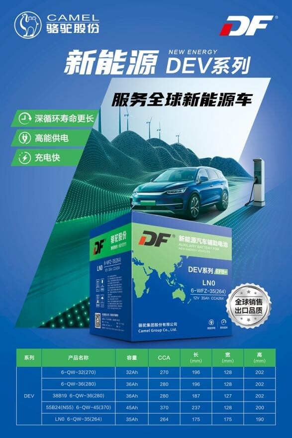新质生产力的本质是创新驱动,它使得生产工艺、产品品质大幅提升,并以新技术、新产品驱动新的社会需求。在新能源汽车大跨越发展的背景下,DF蓄电池专为新能源汽车研发出DEV系列新能源低压辅助电池。