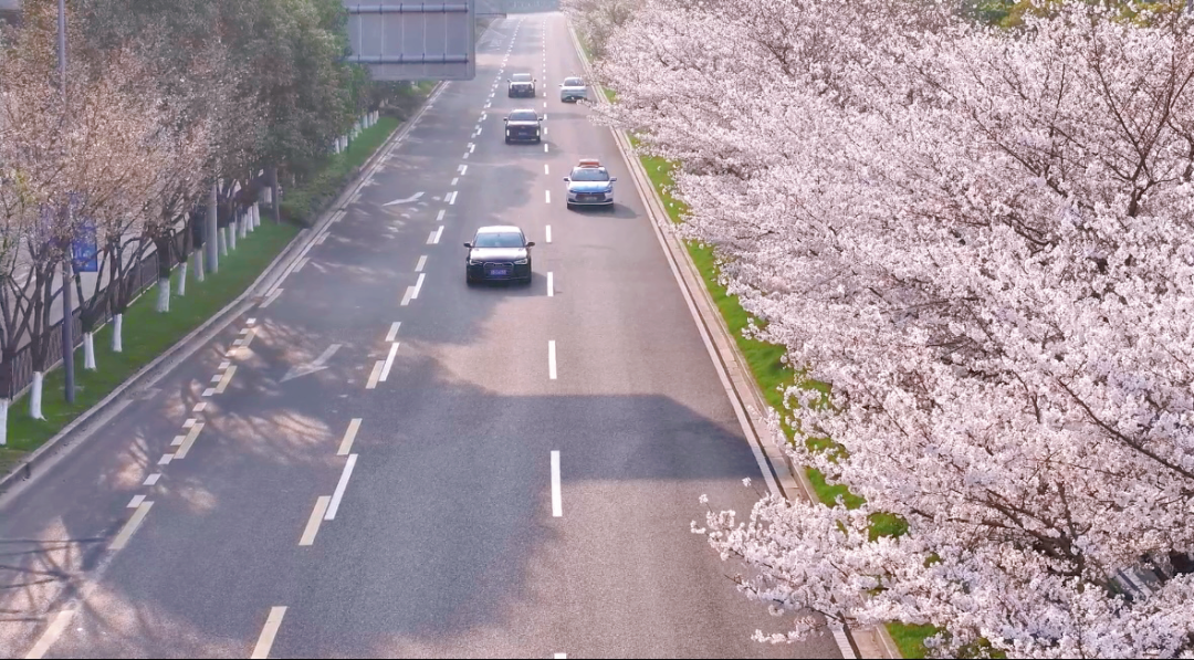 芳菲四月,走在马路上,两侧行道树、绿化带春花烂漫,处处是景。