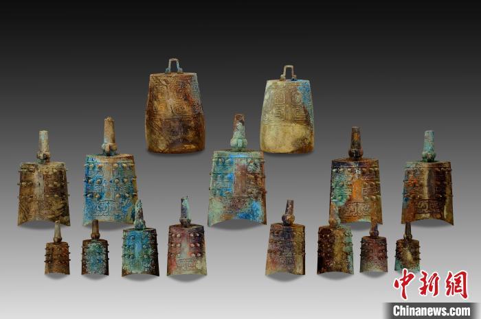 图为湖北随州枣树林墓地M168出土编钟。(湖北省文物考古研究院供图)