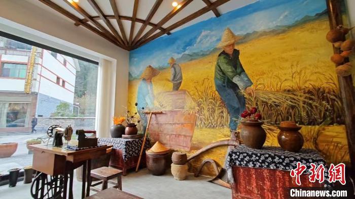 孟沟坝村民张昊天在民宿改造中探路先行。走进“就这个民宿”,店内处处茶香盏巧,陈设精致,民族文化与农耕文化相融合的装修风格令人眼前一亮。