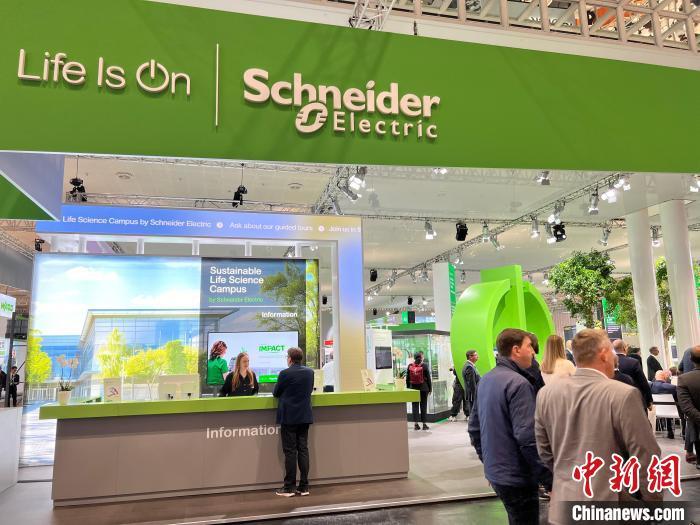 施耐德电气参展2024年汉诺威工博会。图为4月22日,观众经过该公司展位前。中新社记者 马秀秀 摄
