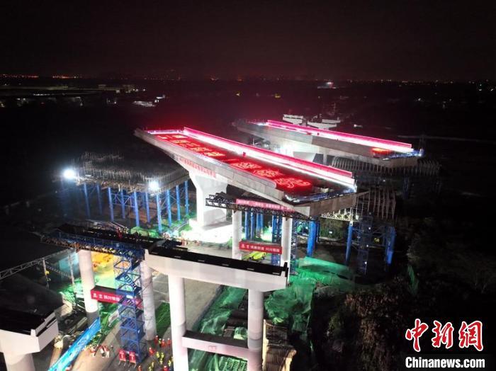 中新网成都5月9日电 (记者 刘忠俊)5月9日,G42四川成都至南充高速公路扩容项目(以下简称“成南扩容项目”)成都入城复线段,总重约1.6万吨的双幅刚构桥在球铰系统牵引下,历时81分钟转体与引桥安全对接,为桥梁后续施工和入城复线段通车打下坚实基础。