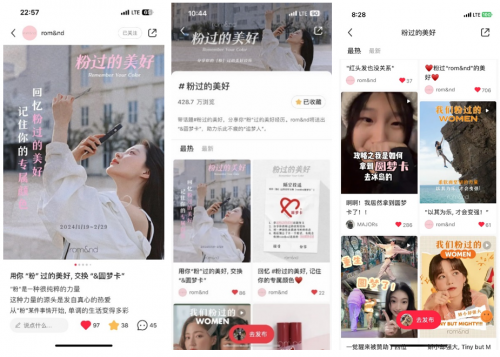 洞察到这一话题风向,韩国知名美妆品牌romand携手小红书,在今年1月发起了「粉过的美好」线上活动话题。romand作为年轻美妆品牌始终以“消费者”为中心,尊重拥有自己个性色彩的狂热爱好者们,“粉”她们的不顾一切,“粉”她们的力量, 相信她们的力量会把世界变的更美好!