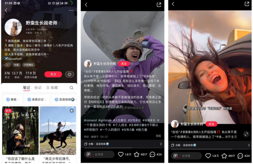 @野蛮生长段老师 是一位旅居成都的户外狂热玩家,“纯粹玩乐”是她粉过的美好。在同龄人忙于考研和工作时,她成为同学眼中的“异类”, 背包环球,爆改房车、买一张通往人生梦想的南极船票......人生没有对错,谁说玩乐不是一种人生态度呢,玩就是她粉过的,也是正在粉着的美好。@野蛮生长段老师 发布的话题笔记互动量超过了2.3万,冲到了小红书 #她力量 话题首页