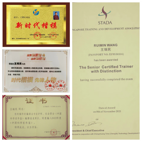 王瑞民现任《中国科学家年鉴》编辑委员会主任委员;中国管理科学研究院商学院双创导师;STADA国际高级培训师;中国策划学院教授;中国策划学会周易专家委员会主任委员;中国当代弘扬易学文化突出贡献人物;“时空风水”创始人;央视(家装总动员)特约嘉宾。2007年11月24日,在由国家建设部中国建筑文化中心举办的“中国传统建筑文化论坛”上被评为“中国当代弘扬易学文化突出贡献人物”,并且《奇门遁甲—空间与时间的函数关系》论文获得一等奖;2015年被评为“中国百强讲师”;2022年获“健康功勋奖”、“时代楷模,先锋人物”、“易学行业领军人物”、“2022年长城论坛年度人物”;“2022年4月和2023年两度入编中国文化信息协会大型文献史册《影响力聚焦》封面人物(中国商务出版社)和《匠心中国》封面人物;2022年9月被央视在线直播网评选为“易学行业百名杰出贡献人物”和“中国十大杰出易学专家”;入编《2022年中国科学家年鉴》;2023年“中国科学家论坛”评选为《国学文化传承创新优秀个人》;2024年2月华医头条评为“中医文化传承使者”;2024年4月中国专家智库网授予“新时代楷模”称号;《当代科学家》2024年第二期季刊推荐了王瑞民和他的《时空风水》。
