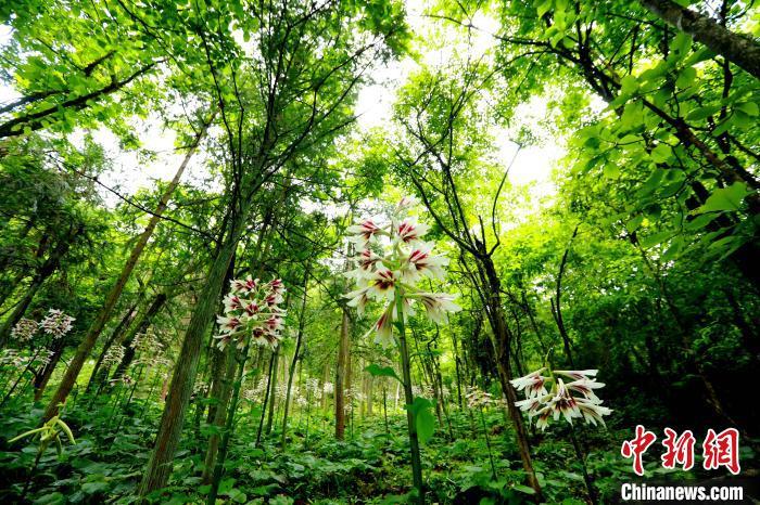 初夏时节,位于贵州省剑河县南寨镇岔路村的乌皆溪林场,出现大面积野生大叶百合竞相绽放的壮丽景观。大叶百合生长在土质比较肥沃、阴凉、湿润的地方,其存在对于林场生态多样化起到一定的补充作用,目前乌皆溪林场集中发现的大叶百合有40多万株,分布面积约1000亩左右。