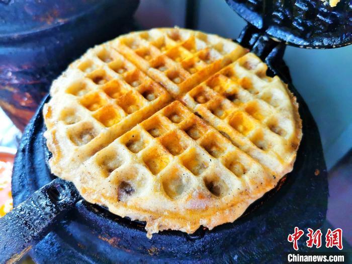 中新社江门5月28日电 题:箩底糍:海内外台山人青睐的中式华夫饼
