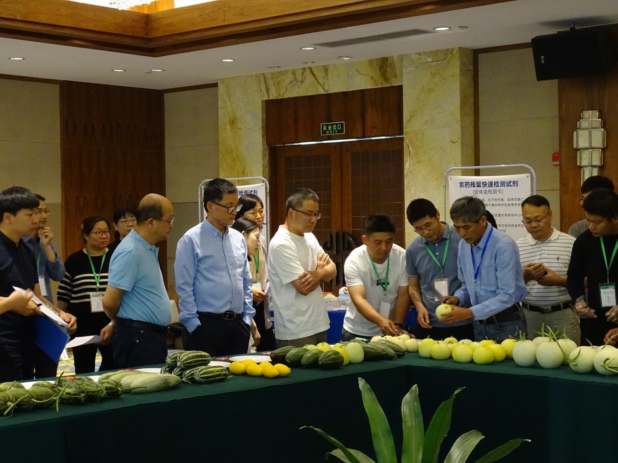 “这个外观圆满,可以打80分。”“这个品种的口感比较脆!”评选共分为可溶性固形物测定与专家综合评议(包括果实外观,剖面色泽、口感风味等内在品质,以及样品包装等指标)两大环节,对甜瓜样品进行了全面评估。同时,农药残留检测也是本次评选的重要一环。检测公司现场对甜瓜农药残留逐一抽样检测,评分表上明确写着:农药检测不合格,一票否决。